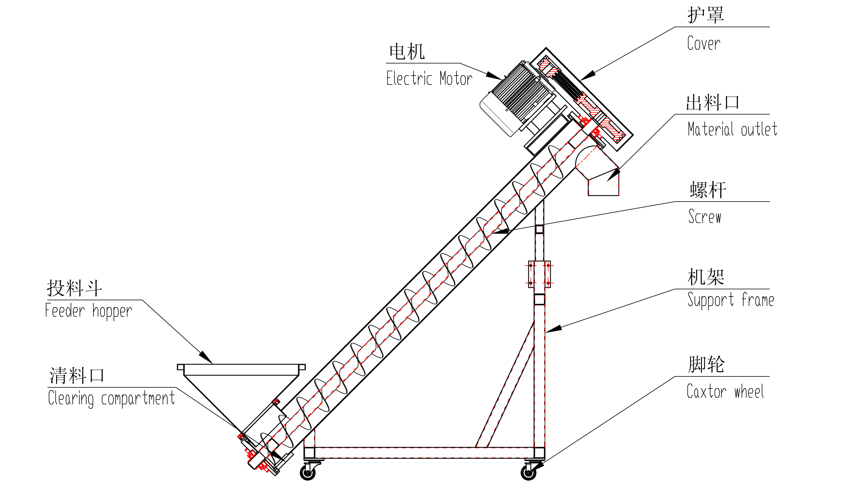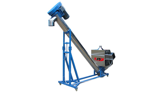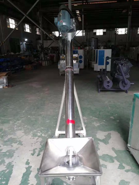 螺桿式上料機根據螺旋旋轉時,由葉片的推動作用,同時在物料自身重力、物料與料管內壁間的摩擦力以及物料的內摩擦力的作用下,物料與螺旋葉片和料管相對滑動的形式,在料管內向前移動的機械傳動原理設計的??捎糜谒苣z原料顆粒、粉塵料、礦砂等物料輸送;
